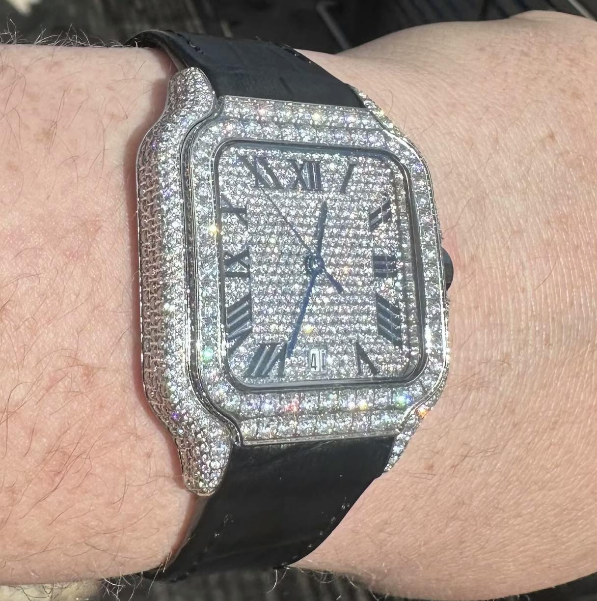 VVS1 Valore Watch w/ Black Leather Strap - Moissanite - White Gold